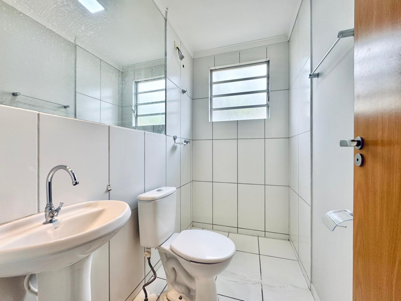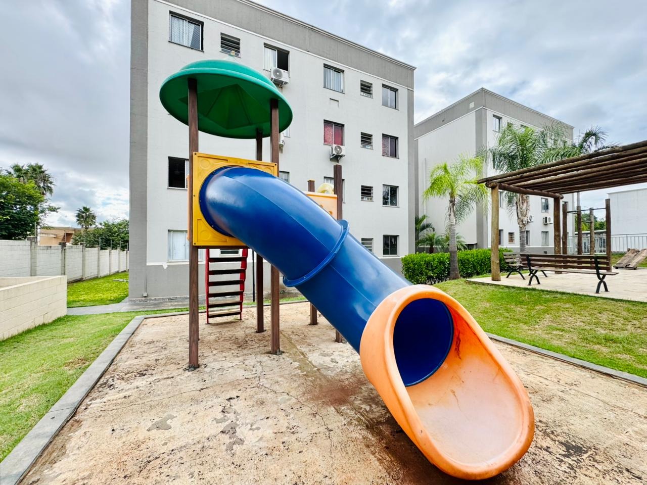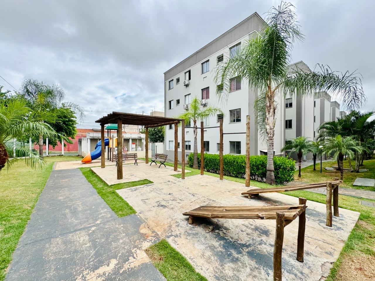 Trata-se de um apartamento situado no térreo, com 42 m² de área privativa. Ele conta com uma sala de estar espaçosa integrada à sala de jantar, dois quartos, um banheiro e uma vaga de garagem coberta.