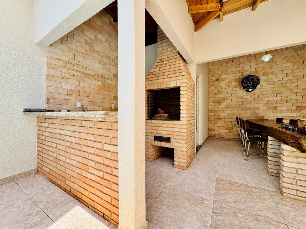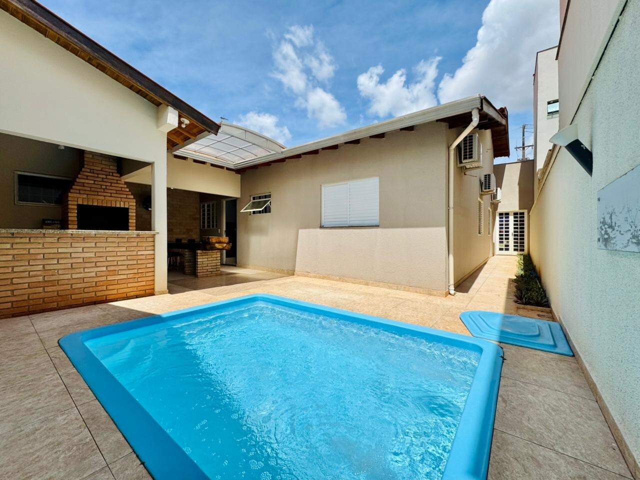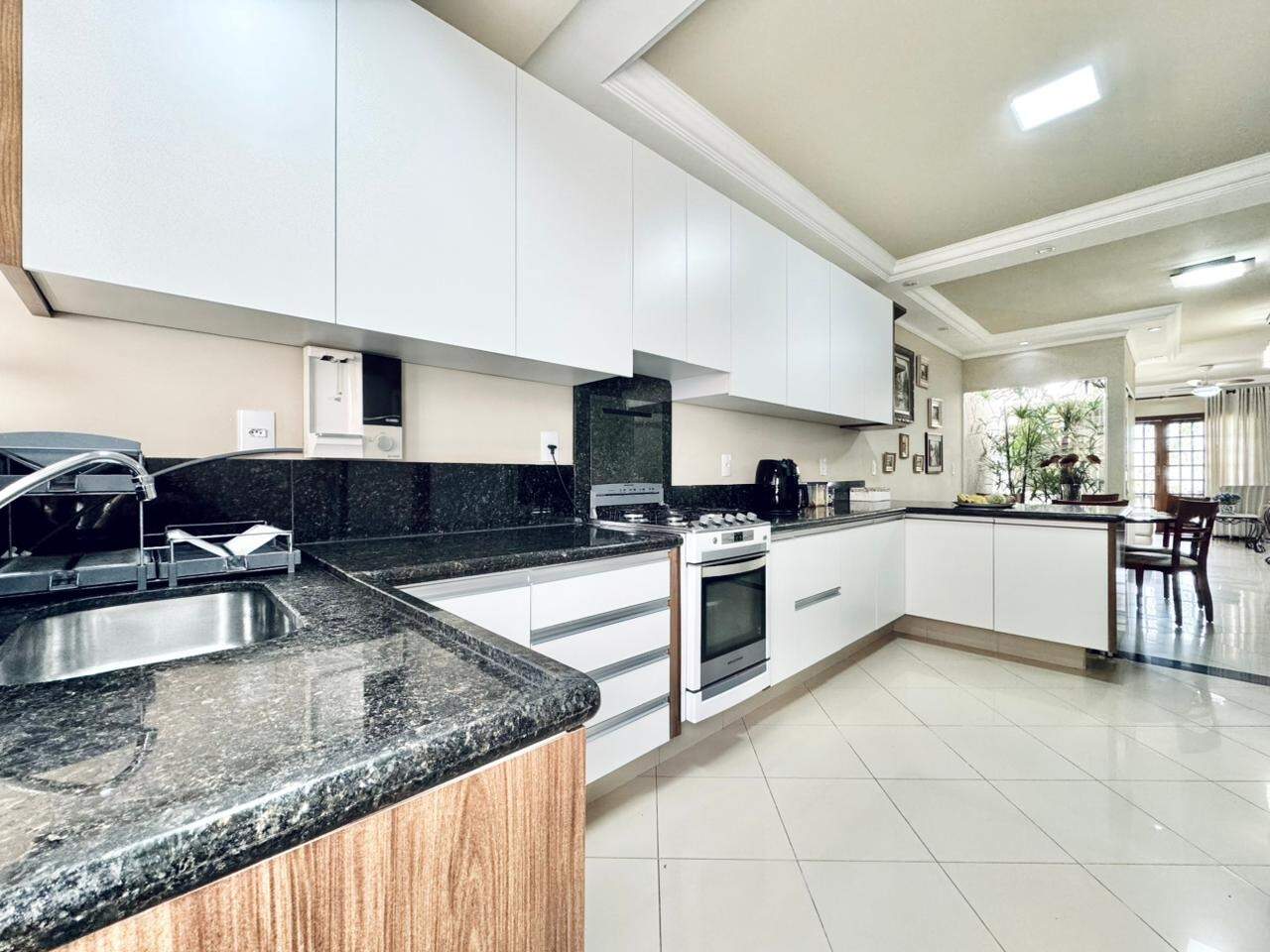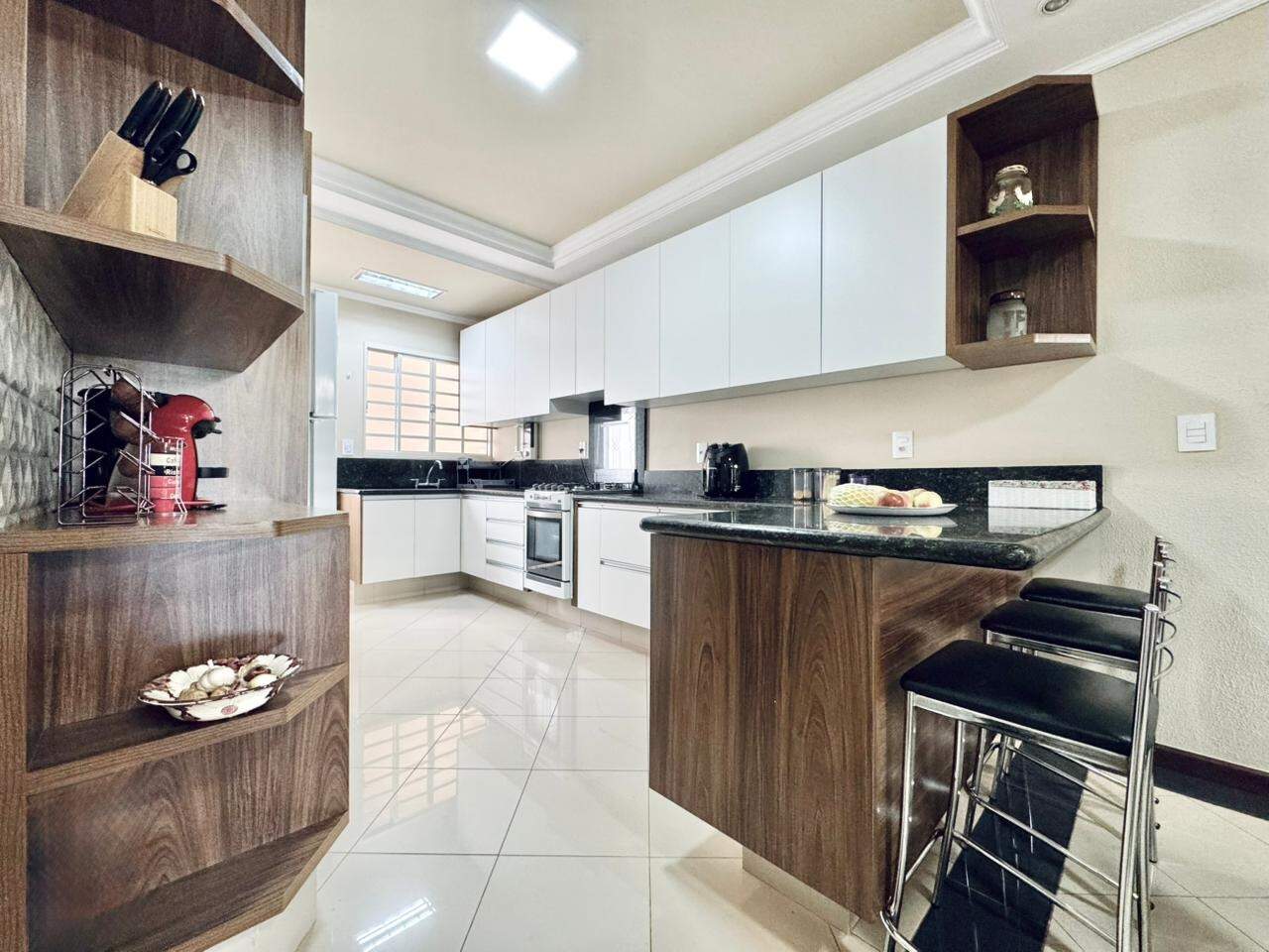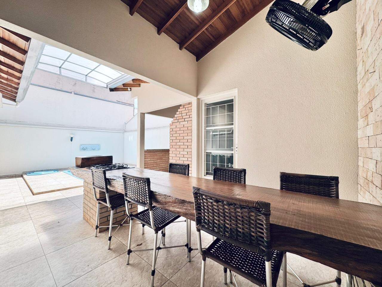 A casa é toda planejada e equipada com armários embutidos em todos os cômodos, painel de TV, cooktop, fogão, ar condicionado nos 3 dormitórios, ventiladores nas salas e área de lazer, luminárias, luzes em led, rebaixamento em gesso, cortinas, prateleiras, gavetões, cristaleiras, mesas fixas, espelhos, box com vidro temperado, aquecedor solar e banheira com hidromassagem.