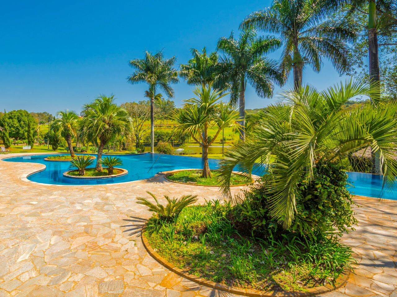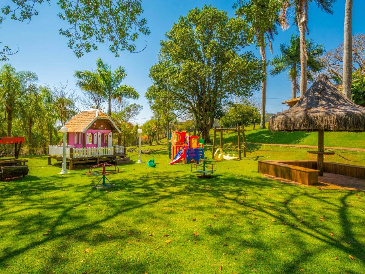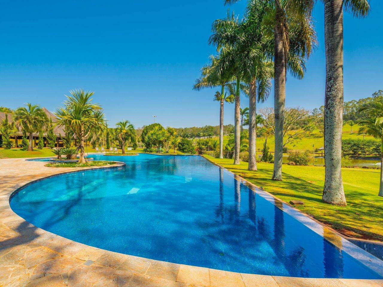 Área de Lazer completa com: Salão de festas, área fitness, piscina adulto e infantil, quadra de tênis, quadra poliesportiva, campo de futebol Society, Lago, campo de golfe, churrasqueira, orquidário, brinquedoteca, espaço gourmet, bosque.