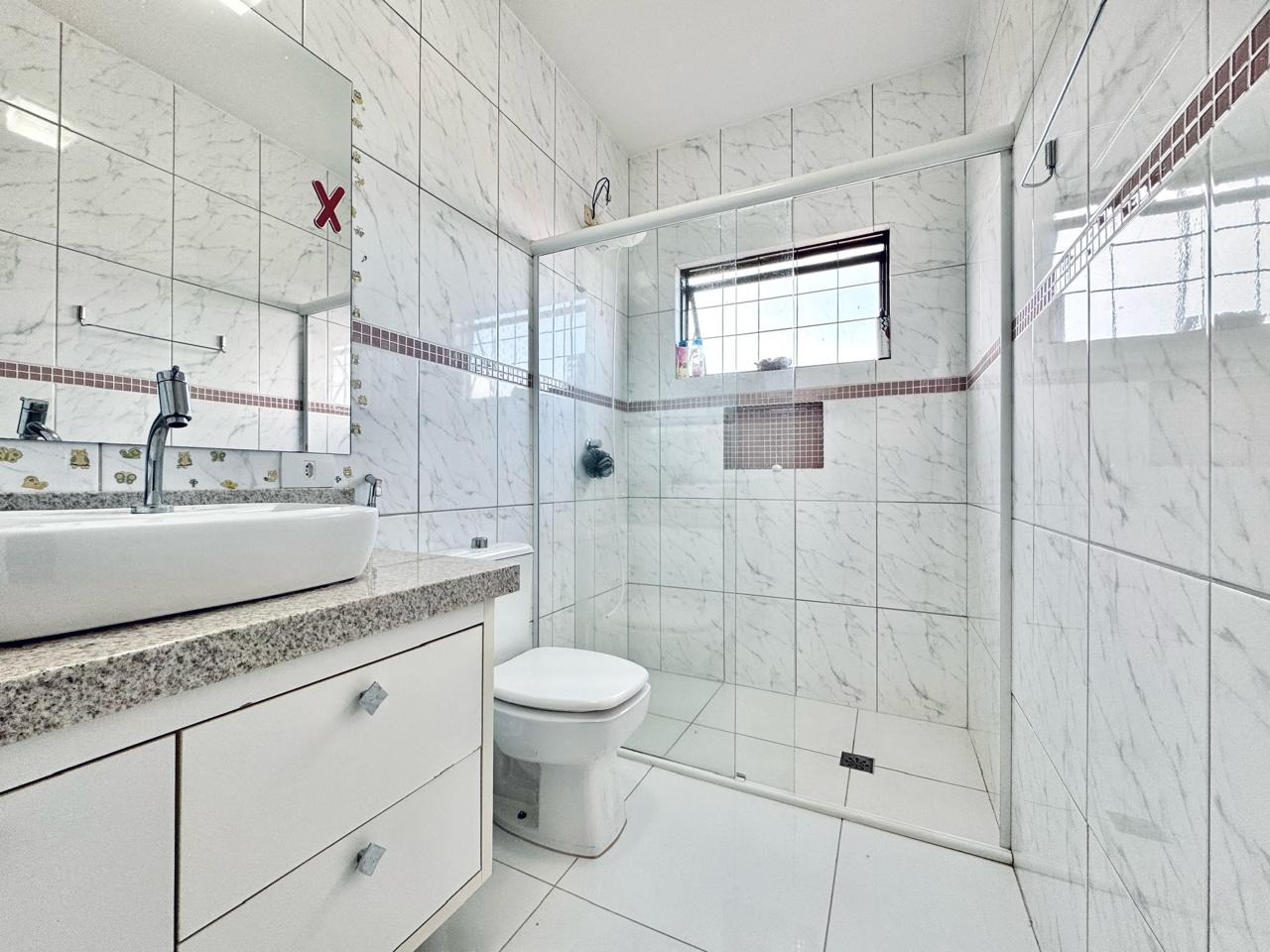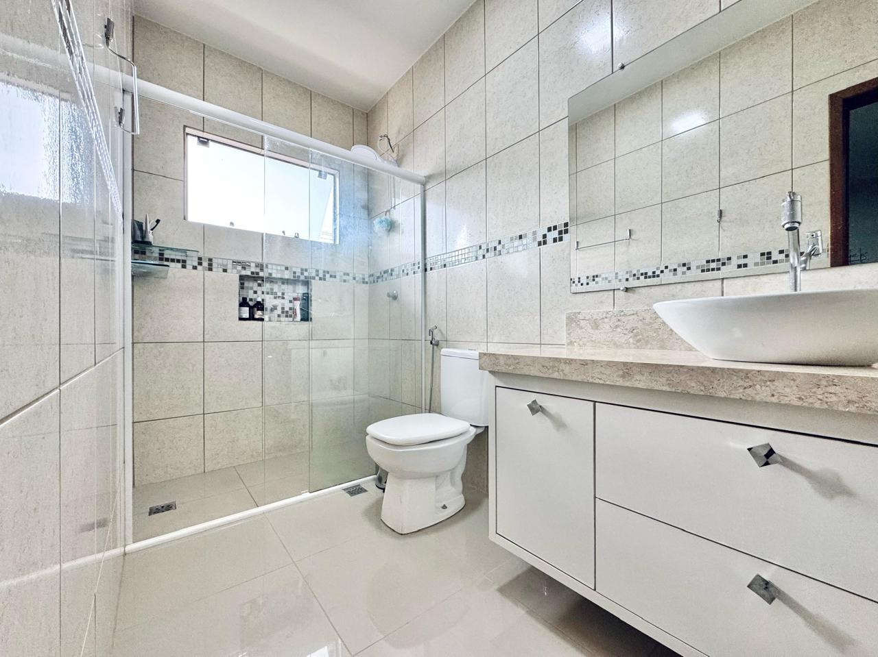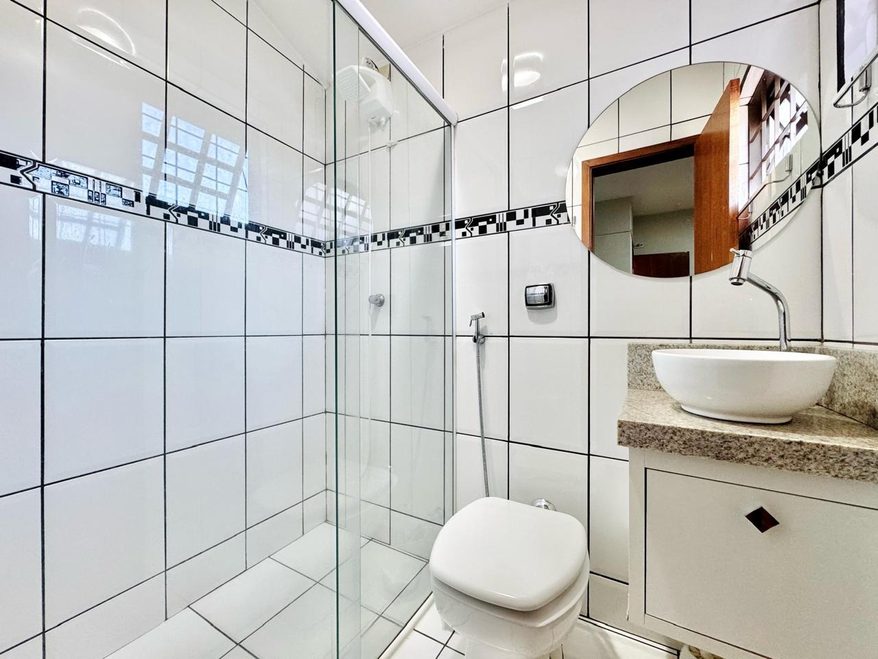 Banheiros completos com armários, espelhos e box em vidro temperado