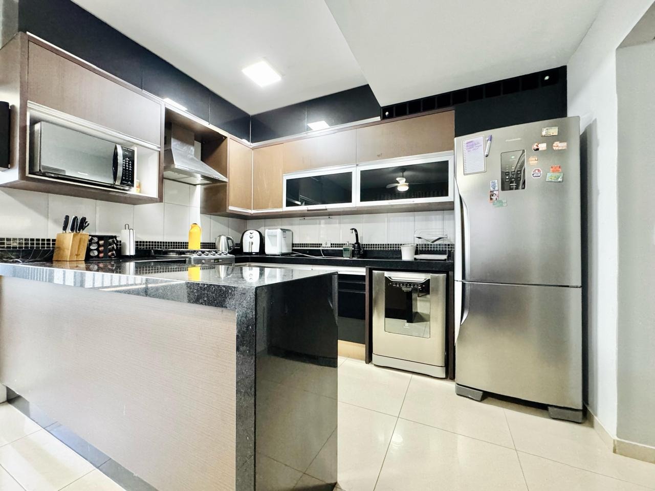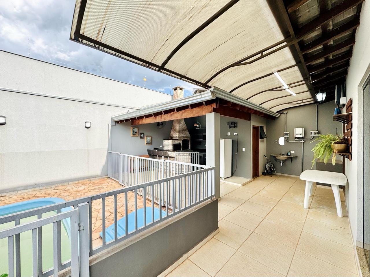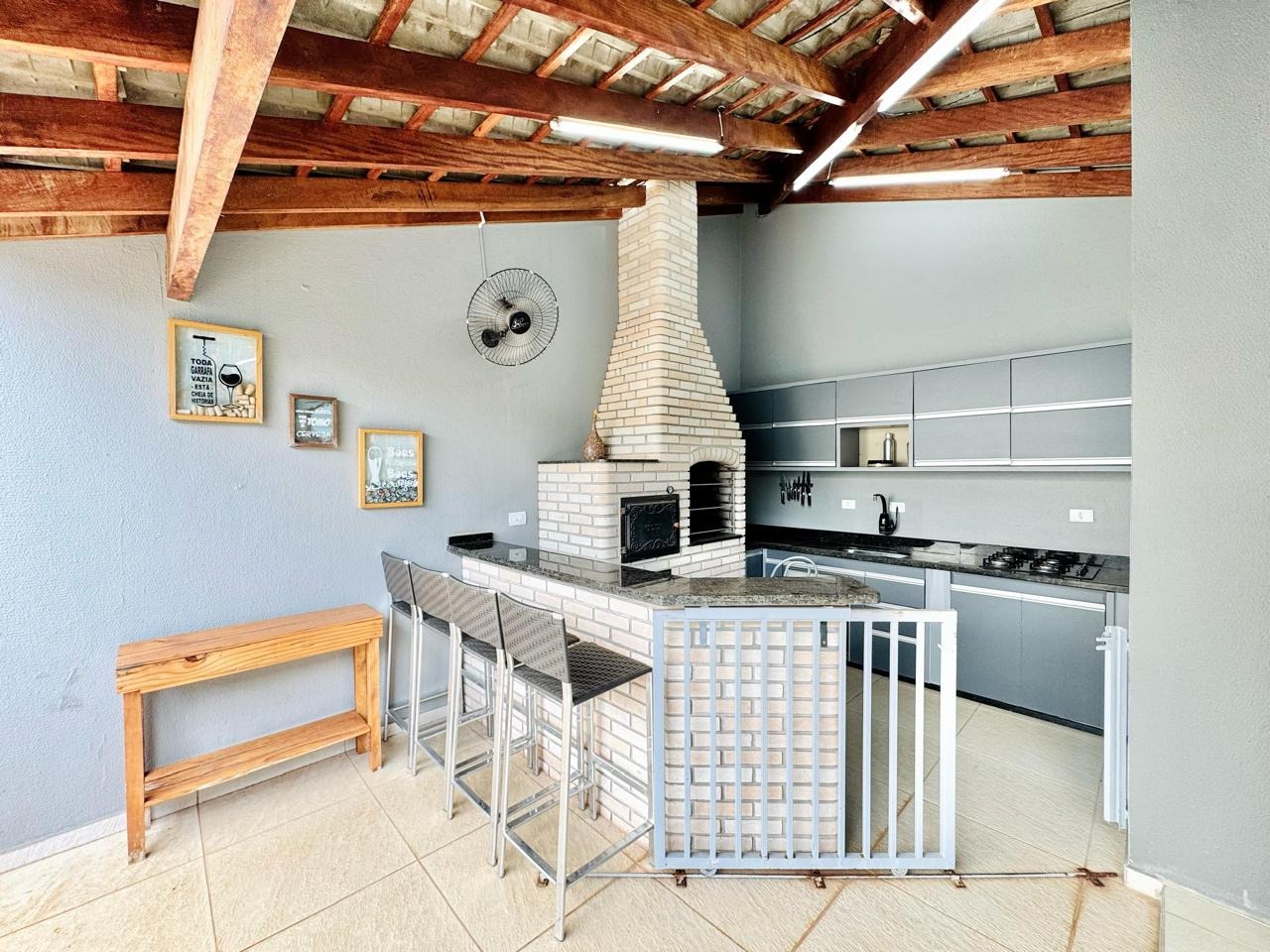 Espaço gourmet completo, com churrasqueira, forno a lenha, cooktop, bancada com armários